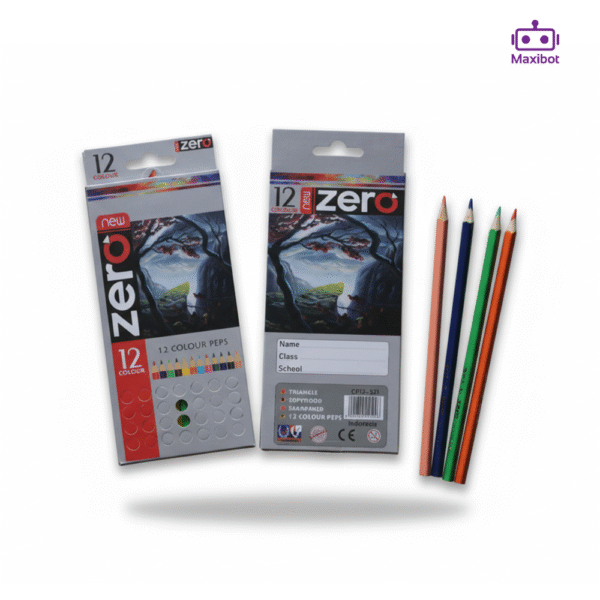 This pack contains 12 vibrant and high-quality “Colour Peps” from the brand Zero. Designed for both school and creative projects, these pencils are made to deliver a smooth and consistent coloring experience. The set is presented in a convenient and compact box, making it easy to store and carry.